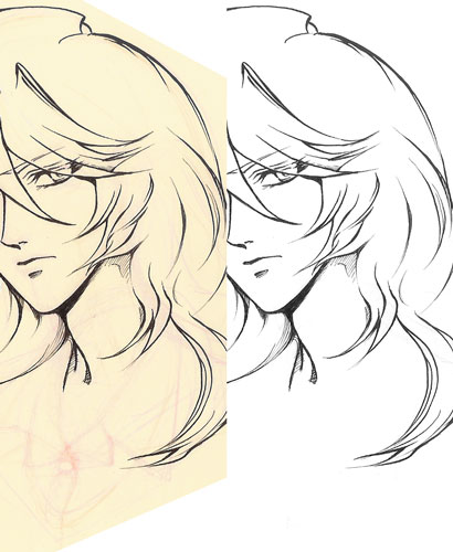 意図はしてなかったけど、右の絵が、フルメイクとスッピンの対比のよう(笑)。過去、使い慣れてるのは日本字ペン。ただ、1本のペンで強弱を表現するなら、一番「無駄がない」(効率的)なのは、やはり柔らかいGペンなんだろうな。とは思っていて、しかし当時はまだGペン「使えなかった」のです。(手の訓練度の不足で。)