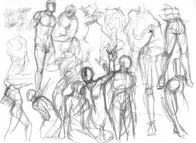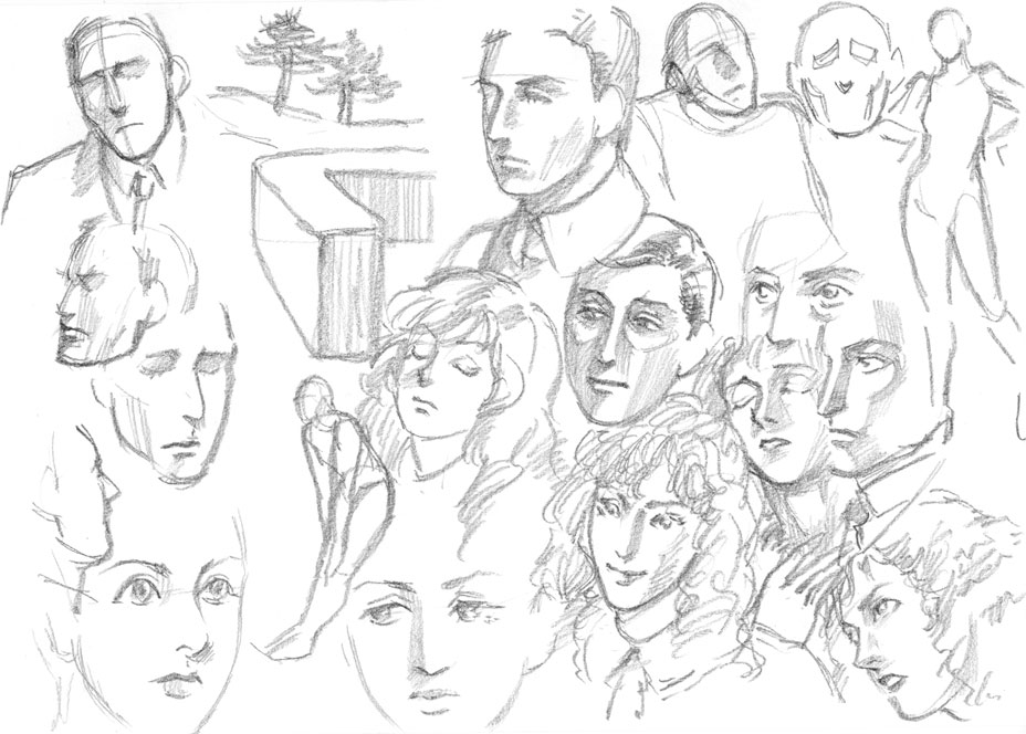 右側:見たもの(ドラマとか)の記憶やイメージを辿って色んなタイプの顔を描く(バリエーションを増やす)練習。