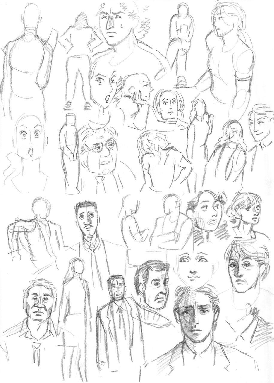 絵を見ながら、他。右側は自分絵らくがき――野暮ったい&古臭い(反省)。