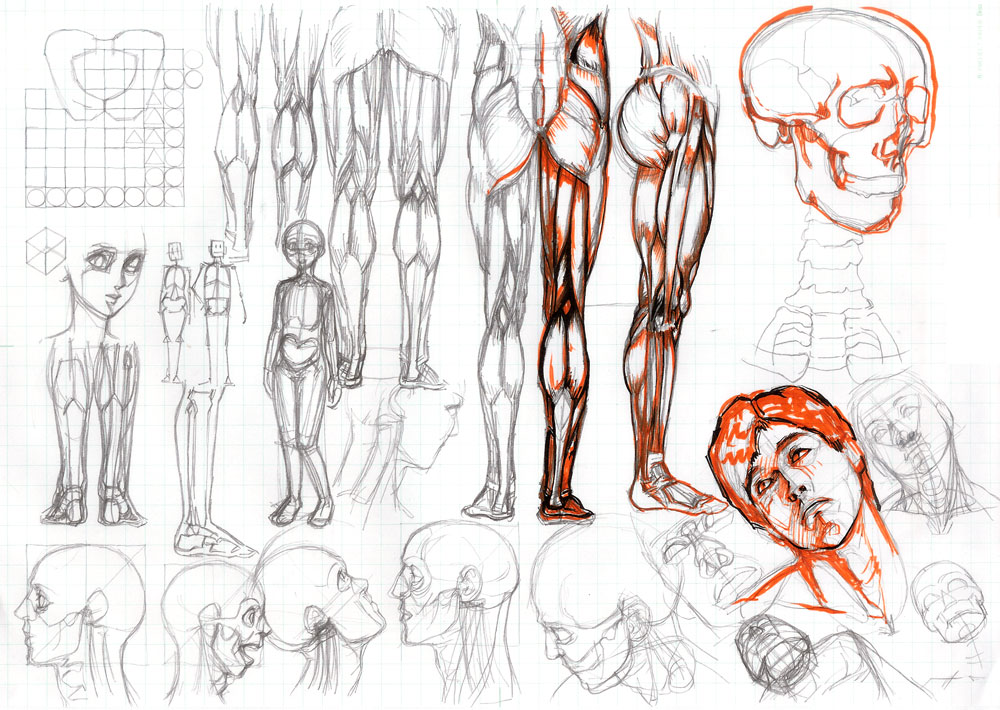 ※両面フル使い:(TV見ながら,実物見ながら、共に)クロッキー系に未使用=裏が白い状態の紙を使って、その裏に解剖図とか模写とかの描き込み系を…というか「クロッキー以外のもの」を描く。