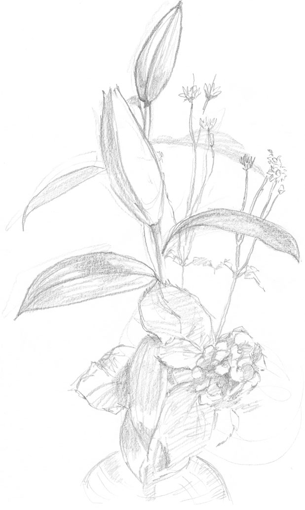 まあ花の種類自体が違って、大輪&本数が少ない=わかりやすい=ふと視界に入り「ちょっと描けそうかも」と思って描いた訳ですが(笑)。
