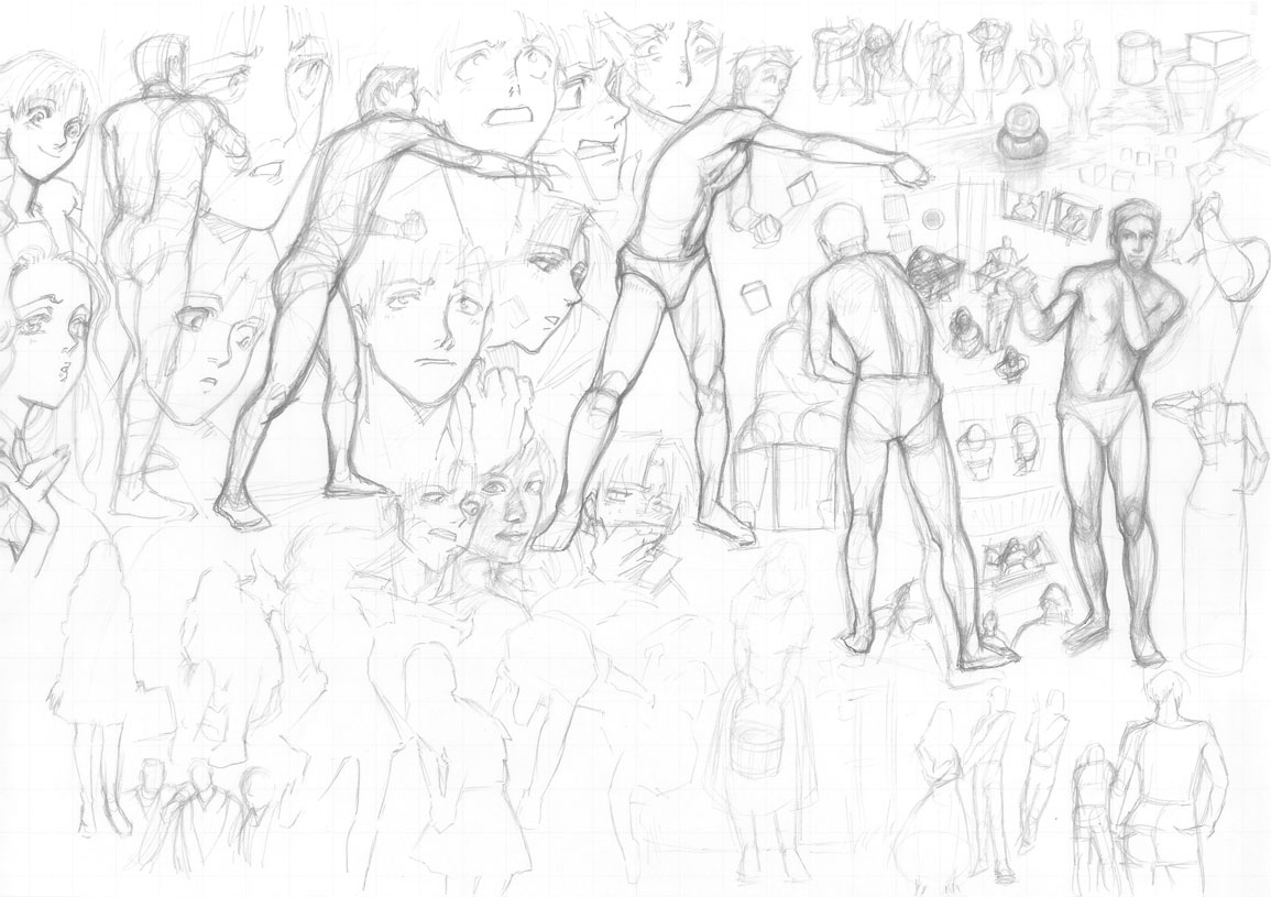 右上のチマチマしたの(笑)はらくがき、左下はイメージでシルエット描き。