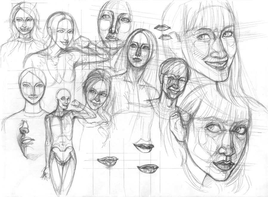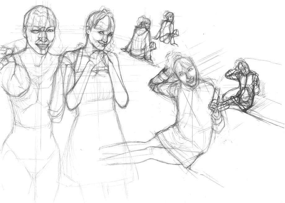 あと、「数」こなしの為に、トレスで大まかなアウトラインやアタリだけ取った後に模写をしてみるテスト。(こんな感じを20モチーフくらい×2枚。)
