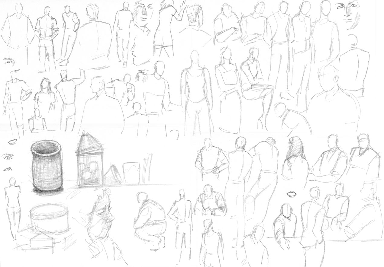 TV見ながら。左下あたりは室内で目についたものをクロッキー等。
