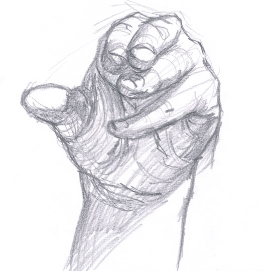 真ん中3本指の重なり具合はまだいいけど、小指と親指がダメダメだった。(描いてる時の視界と似ても似つかなかったという意味で。)