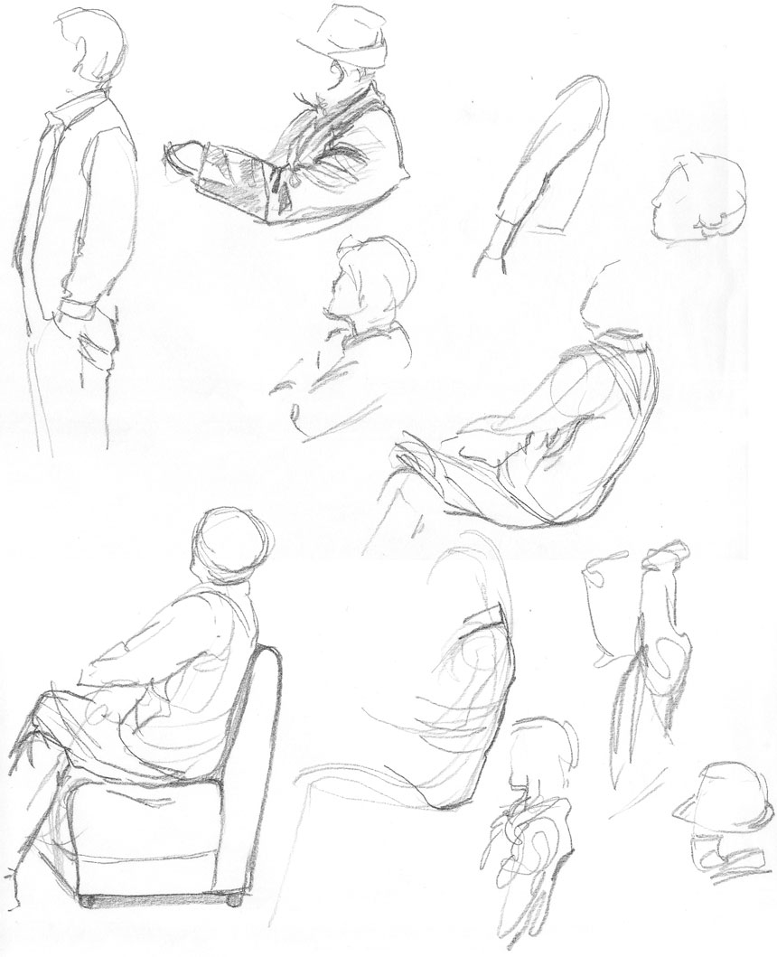 自分のクロッキーの、対象をちゃんと見て描いた線になってない所がイカン――というのは、
