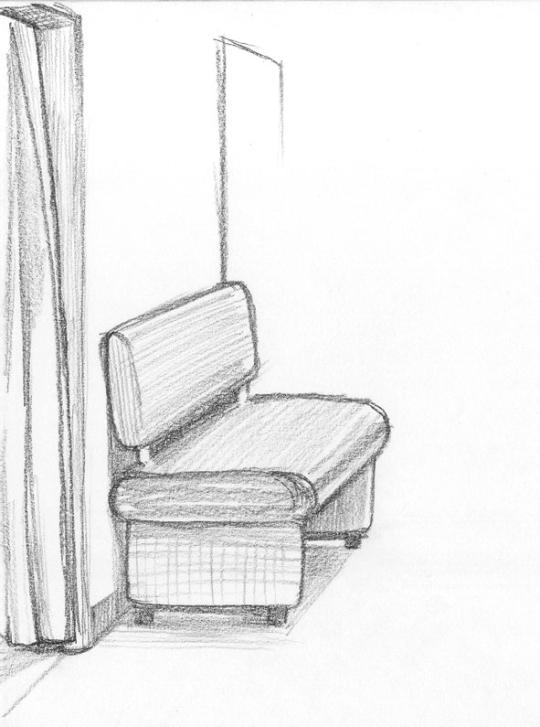 (その後はまた別の意識&目的で描いたので、この限りではない。) - イスはダメダメだった。入り口とカーテンは、けっこうソレっぽく描けた。