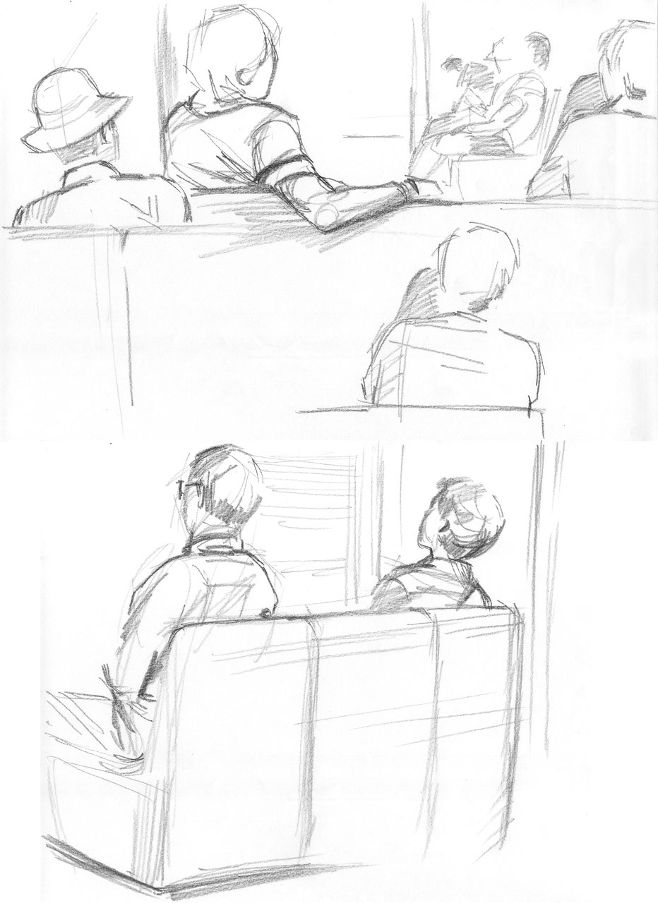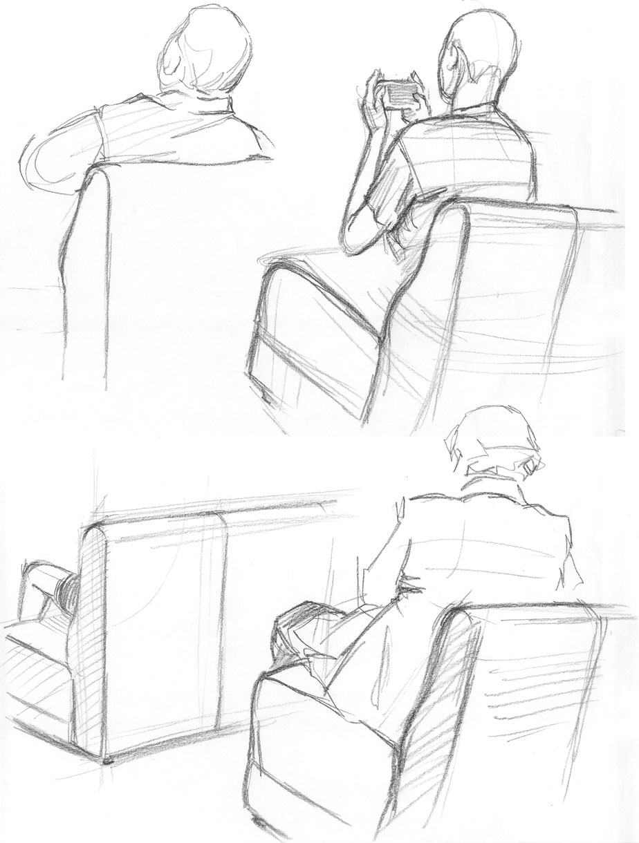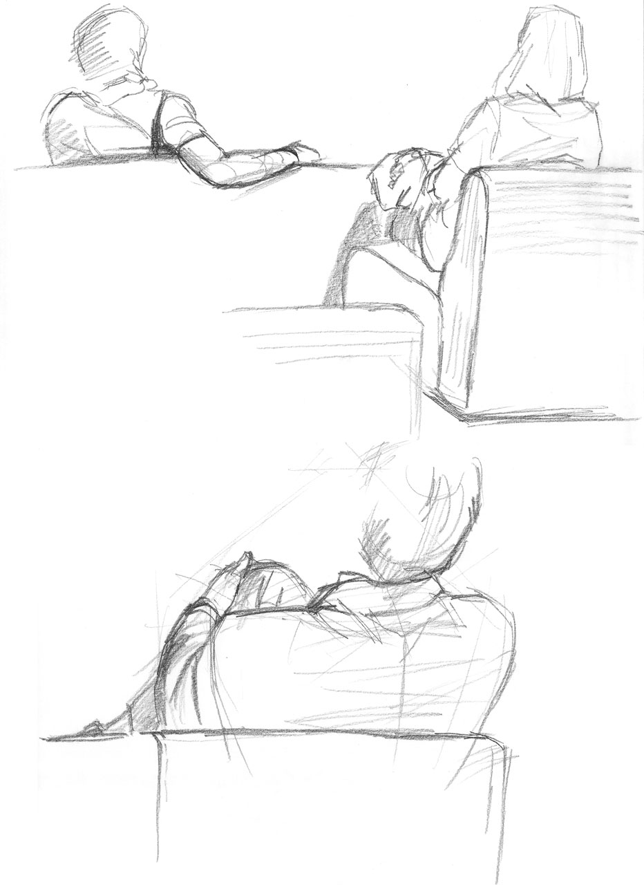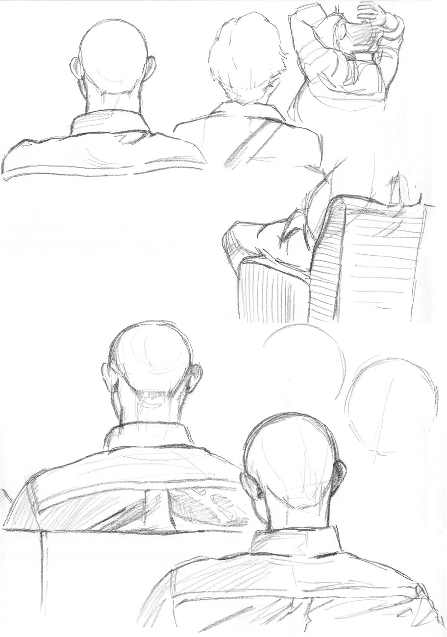 右上:下半身描く前に席を立ってしまった→結果、軽くホラー画像(笑)。
